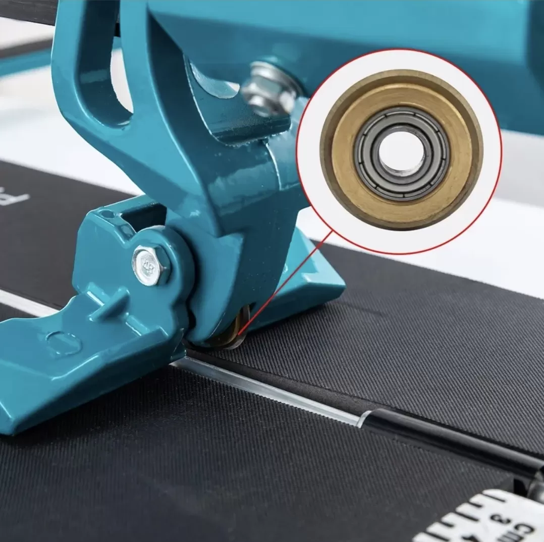 Полное отсутствие люфта между кареткой и рельсом и максимальная устойчивость рукоятки при резке — прижимной обхв