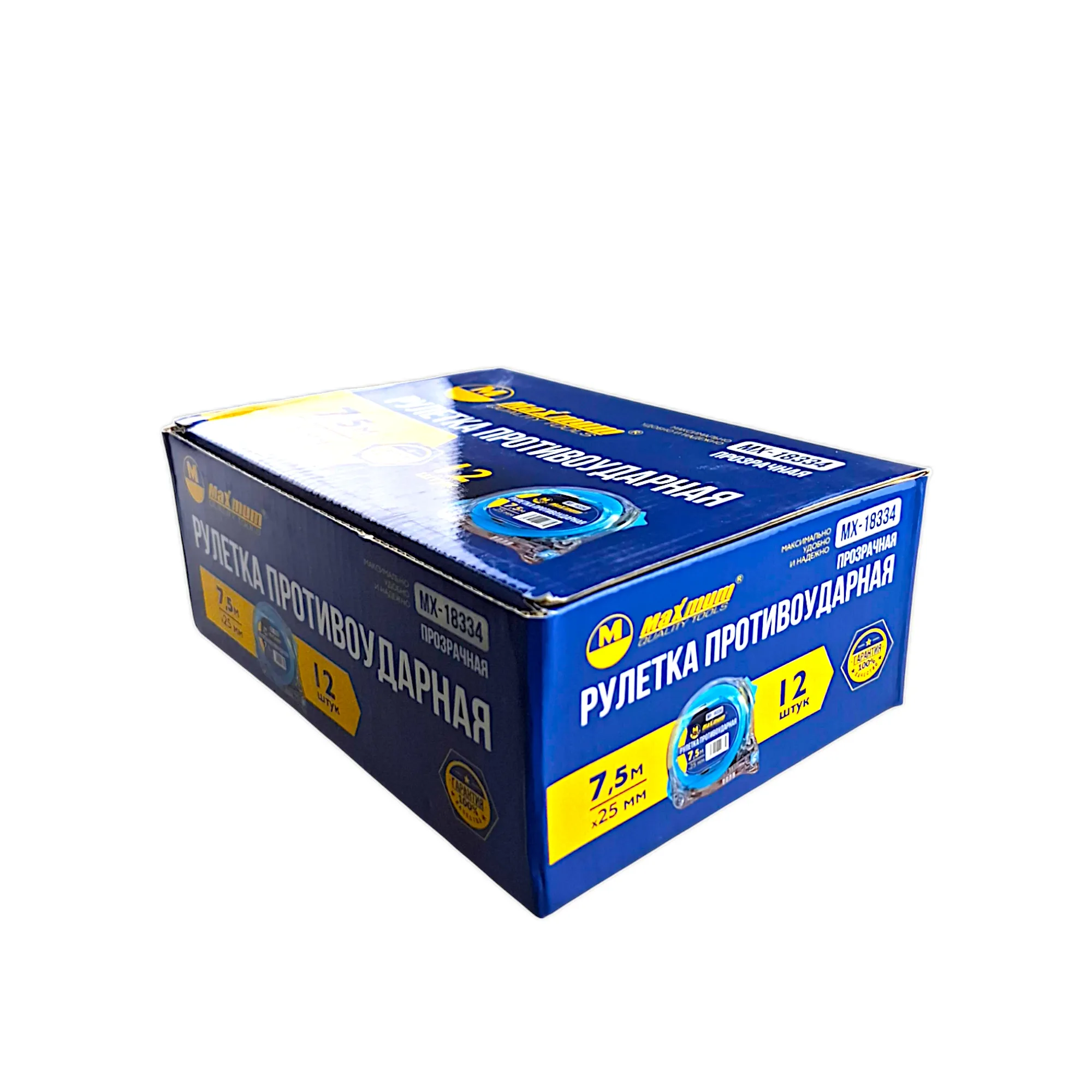 Рулетка 7.5 м с поясным зажимом противоударная от "Maximum" оборудована широкой стальной лентой 25 мм.