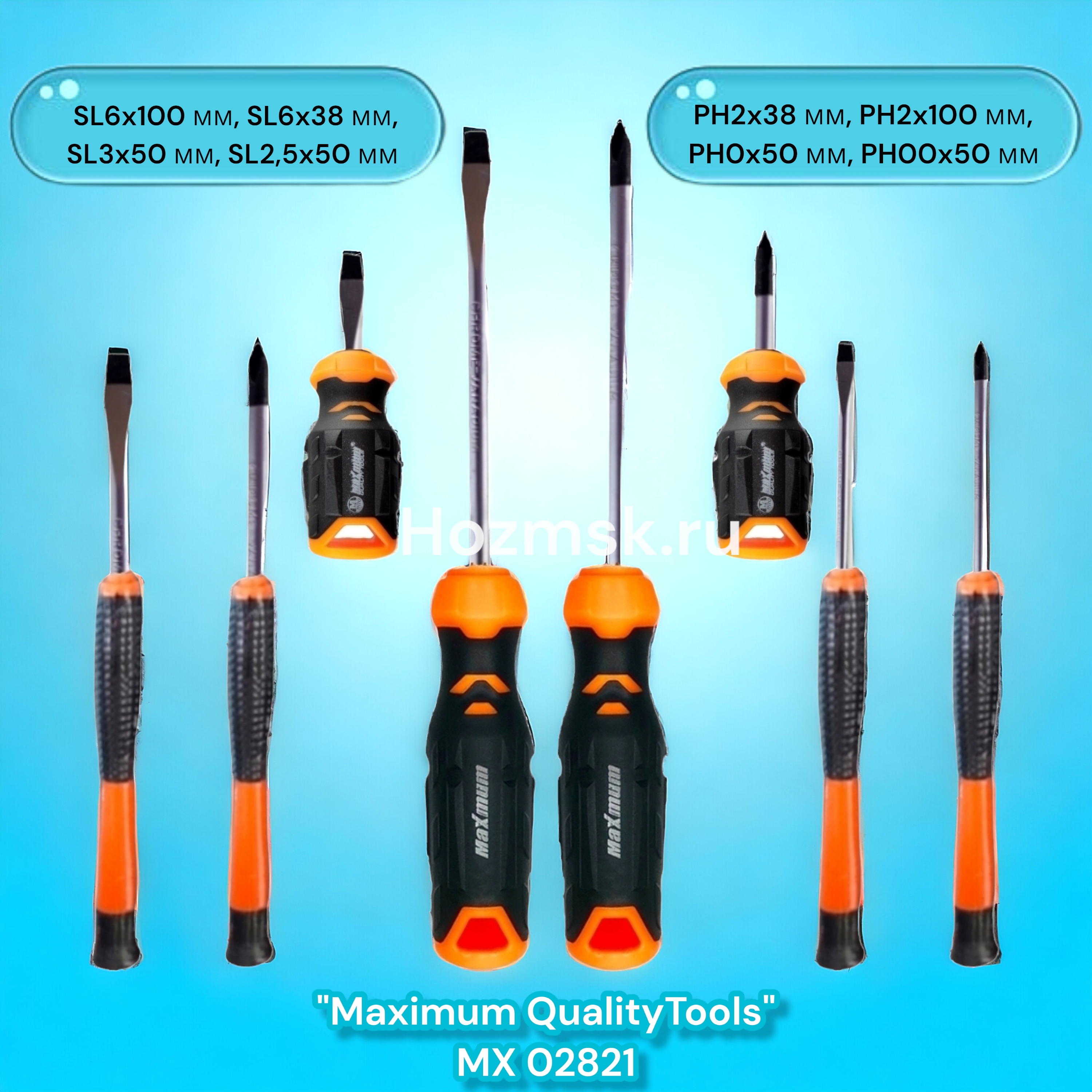Жало шлицевых отверток выполнено из высокопрочной хромованадиевой стали и содержит гравировку размера и типа шлица.