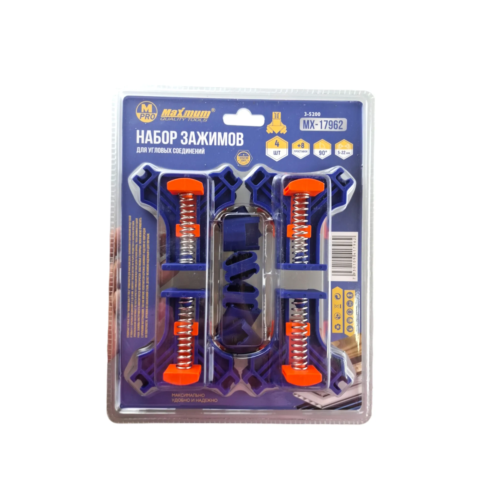 Набор угловых зажимов 90⁰ от "MAXIMUM" MX 17962 — это очень популярный и полезный инструмент для столяров, мебельщиков и всех, кто работает с деревянными конструкциями.
