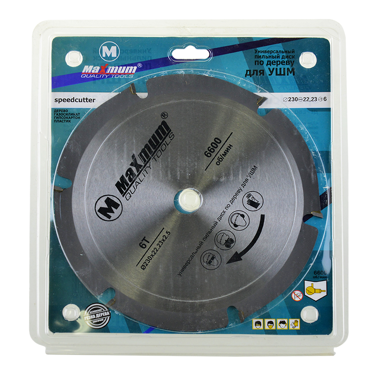 Универсальный пильный диск 230x22.23 мм от "Maximum" имеет 6 твердосплавных зубьев и предназначен для УШМ. Наличие векторной кромки и шести специальных зубов позволяет работать данным диском на высоких оборотах, без перегрева и с минимальной отдачей при резке.